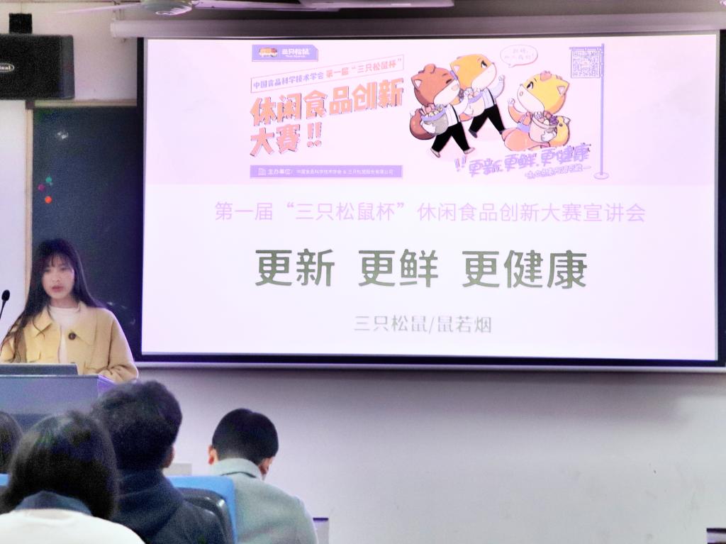 3月13日,“三只松鼠杯”休闲食品创新大赛宣讲会在食品楼215报告厅举行。本次大赛旨在提升学生的创新创业能力,为广大食品学子提供实践与技能展示的平台。本次活动由国产探花
