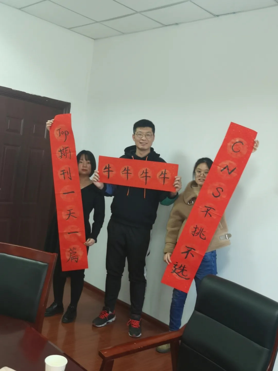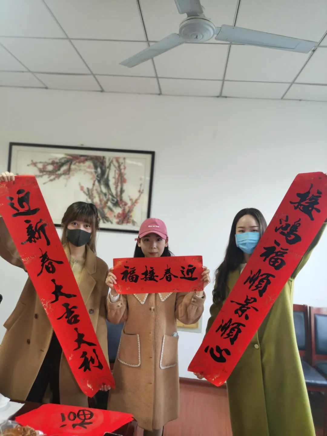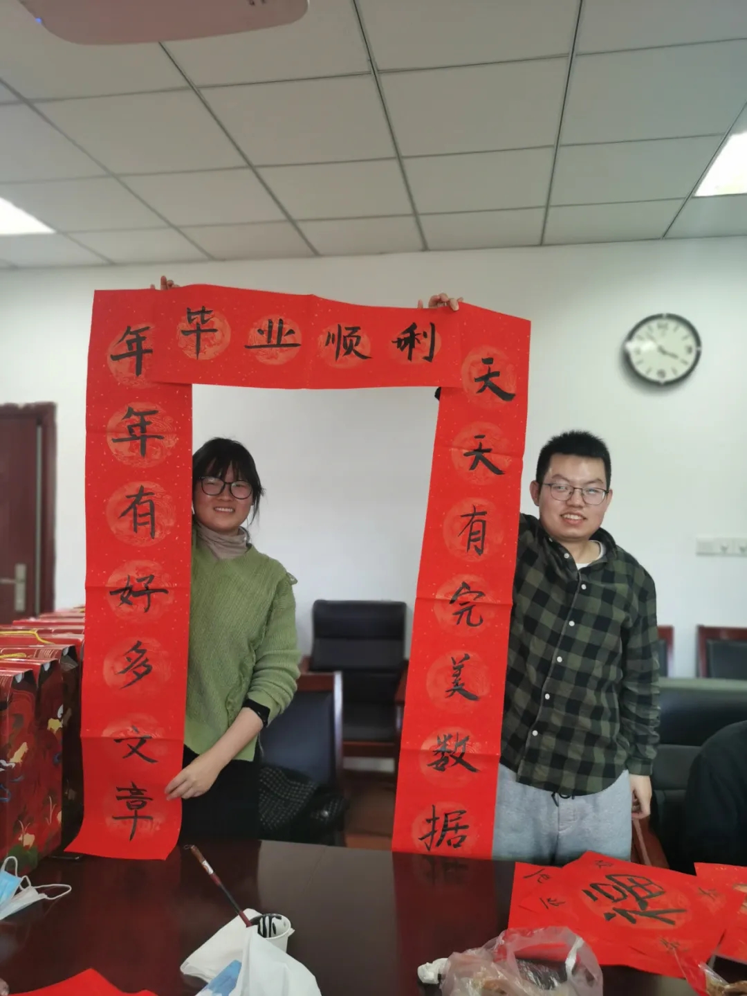 为在校生准备“笔墨纸砚”,现场书写“福”字和春联。CNS不挑不选,Top期刊一天一篇;喜大普奔发文章,早日暴富中C刊... 同学们结合食品特色的科研春联,表达了研究生对来年科研之路的信心和美好心愿。