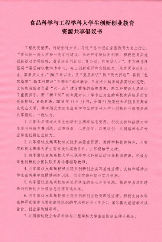 会上,与会21所高校共同发出食品科学与工程学科创新创业教育资源共享倡议。