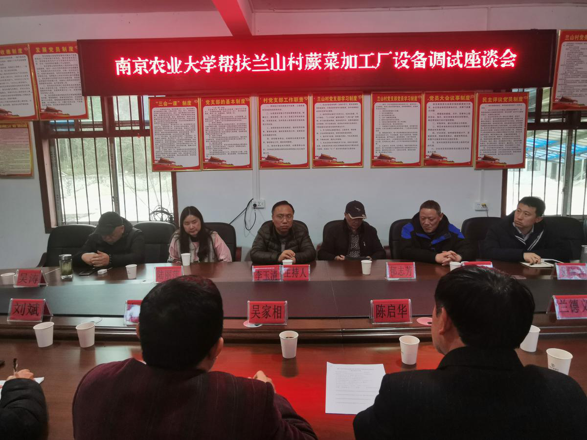 专家、设备安装技术员、收购蕨菜厂家、县农业农村局、县市场监管局、县供销社、谷硐镇、兰山村两委人员组织的蕨菜加工设备调试座谈会,会议就利益联结机制、管理运营机制、包装设计、有机论证、项目申报、原料保障、食品质量、设备质量、安全保障、制度建设、生产许可、培训、产品销售、环保、管理、党建等进行商讨,确保有专人抓、专人管,让蕨菜加工真正落地见效,实现农业增效、农民增收。