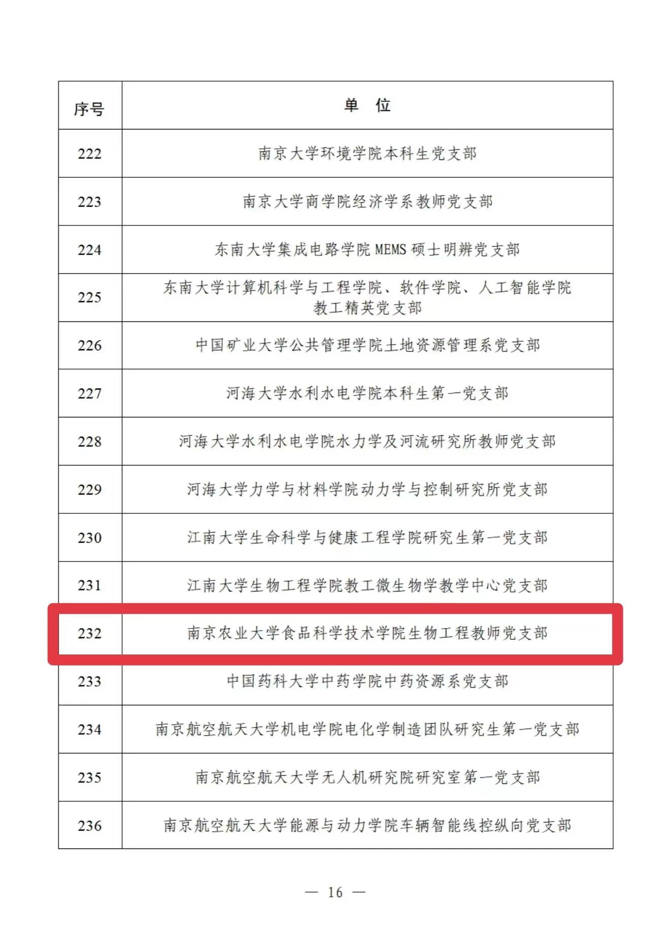 生物工程教师党支部入选第四批全国党建工作样板支部,畜产品加工硕士生第一党支部入选第三批全国高校“百个研究生样板党支部”。
