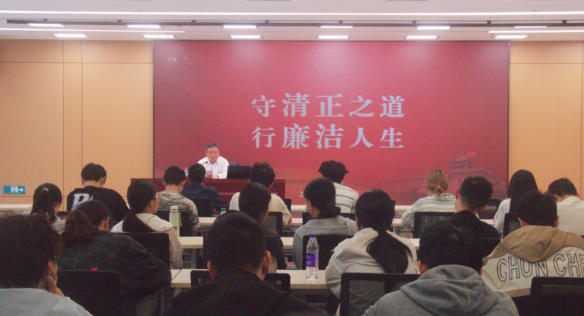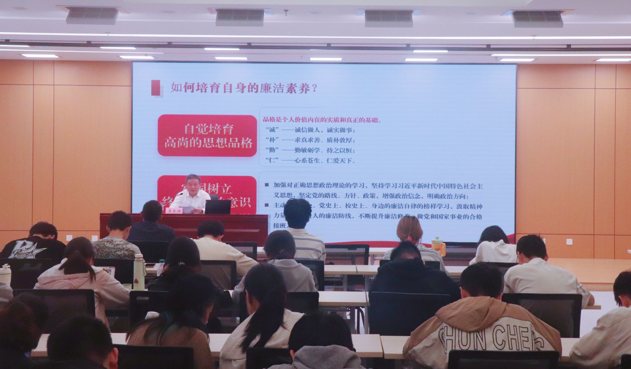 课堂上,吴荣顺以“守清正之道,行廉洁人生”为题,对新时代中国教育的变革与奋进、教育强国的内涵特征与实践路径等内容做出详细论述。同时,围绕大学生常见违纪违法典型案例、如何践行廉洁自律等方面,和同学们进行了热烈交流。
