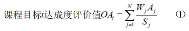 课程目标达成情况定量评价法的数据来源为课程教学大纲中支撑课程目标的各考核环节的考核结果,若课程目标i的达成度由N个考核点支撑,设第j个考核点的总分为Sj,学生平均分为Aj,权值为Wj,那么课程目标i的达成度评价值按式(1)计算: