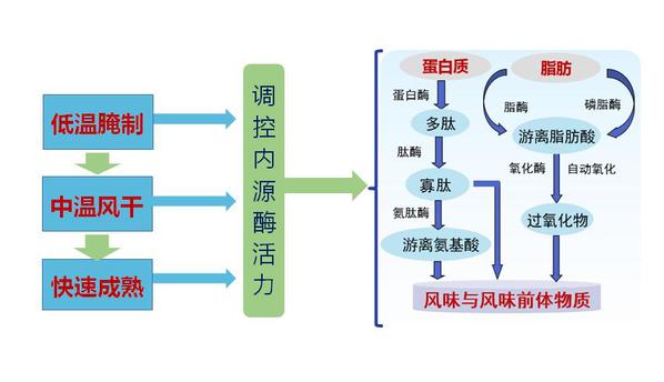 据该团队介绍,内源酶,顾名思义,就是肌肉内本身就存在的酶,常见的有分解蛋白质的组织蛋白酶、羧肽酶、氨肽酶等,以及分解脂类的脂肪氧化酶、磷脂酶等。这些酶在腌制过程中通过催化肉品内部的蛋白和脂肪分解,从而产生让人觉得好吃的风味物质——游离氨基酸、寡肽和酯类化合物等小分子物质,这一发现“揭示了中国传统腌腊肉制品浓郁风味生成的秘密”,被NatureChina评为2007年度中国十大科研亮点。
