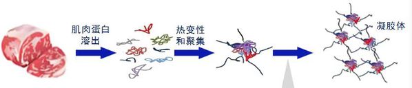 面对西式低温肉制品出水出油严重、产品易变色、货架期短的问题,团队通过科研攻关,揭示出在热诱导下,肌原纤维蛋白纤丝发生“肩并肩”交联形成凝胶新机制。