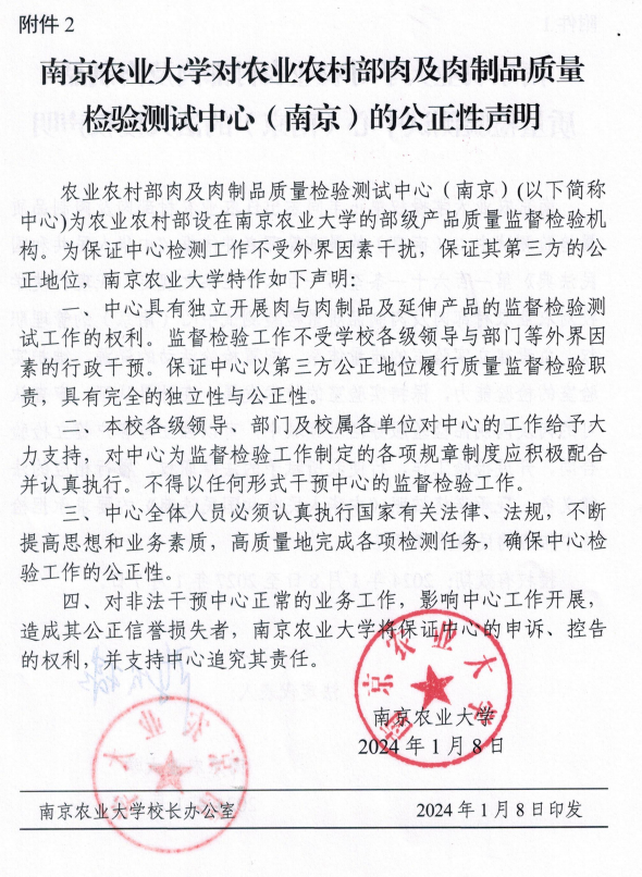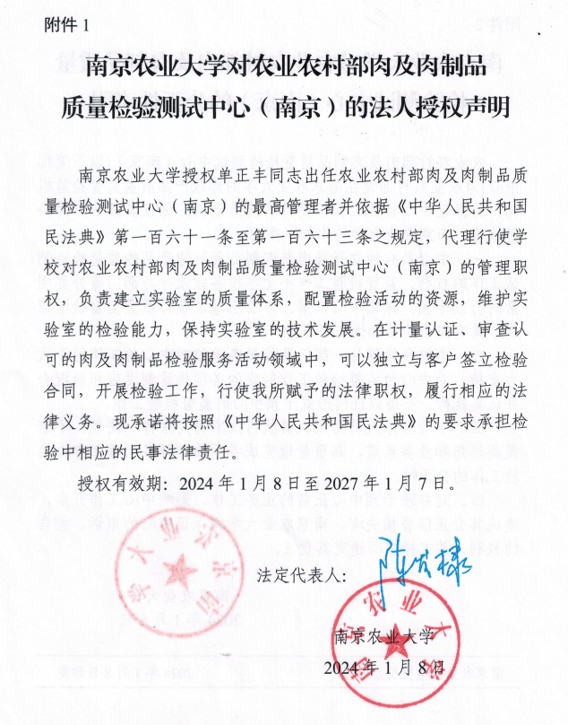 农业农村部肉及肉制品质量检验测试中心(南京)(以下简称“中心”)是农业农村部部级产品质量检验测试中心,中心根据农业农村部(农质发〔2013〕1号)文组建。中心于2015年3月通过国家认监委农业组的国家计量认证、食品检验机构和农业部检验机构考核、审查认可的首次评审,获得资质认定计量认证证书、食品检验机构资质认定证书、农产品质量安全检测机构考核合格证书、农业农村部审查认可证书。中心主管部门是国产探花