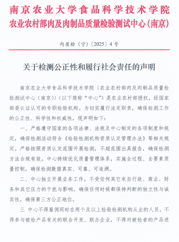 法人授权独立对外开展检验业务,中心有相对独立账目,独立核算,为具有第三方公正性的肉及肉制品质量检验机构,是社会公益性技术服务事业单位。