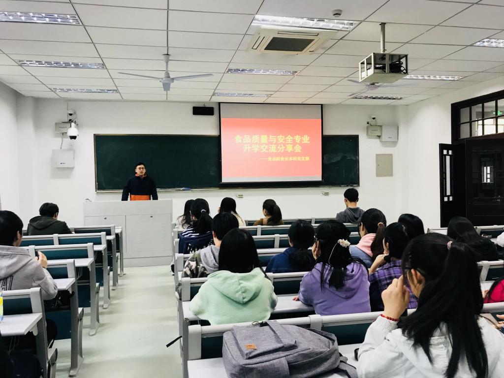 4月2日,为充分发挥党员先锋模范作用,突出党支部战斗堡垒作用,食品院本科生食安党支部在主楼102教室举办食品质量与安全专业升学交流会。五十余位本科生参与此次活动。