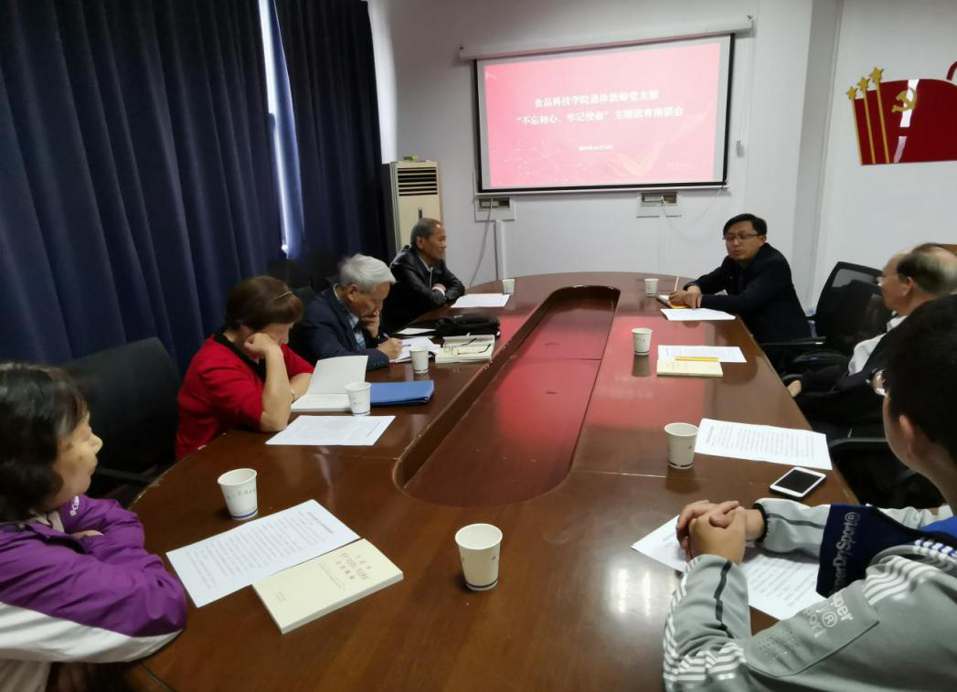 10月14日下午,国产探花 国产探花 离退休教师党支部在食品院党员活动室举办“不忘初心、牢记使命”主题教育学习会。国产探花 党委书记朱筱玉出席了座谈会,支部六位退休党员参加此次活动。座谈会由国产探花 离退休党支部书记江汉湖教授主持。