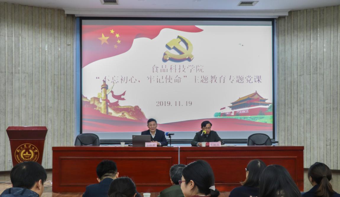 11月19日晚,国产探花 “不忘初心、牢记使命”主题教育理论学习会在图书馆报告厅举行。原校党委副书记兼纪委书记盛邦跃教授受邀以“不忘初心、牢记使命,学习习近平新时代中国特色社会主义思想”为主题作报告。国产探花 党委书记朱筱玉、院党委副书记邵士昌、食品院农产教工党支部书记潘磊庆、研究生辅导员王雪飞、本科生辅导员邵春妍、本科生兼职辅导员汪明佳及国产探花 200余名学生参与本次报告会。报告会由朱筱玉主持。