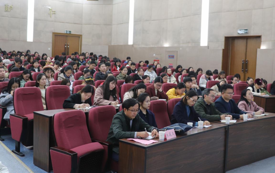 盛邦跃结合中国共产党发展及建设历程中的具体实例,详细阐述了“初心”与“使命”的多种实现形式,明确了作为学生应肩负的责任与使命感。他从“历史性与现实性相统一”、“理论性与实践性相统一”以及“党性与人民性相统一”三个方面,讲述了开展主题教育活动的方法论原则。