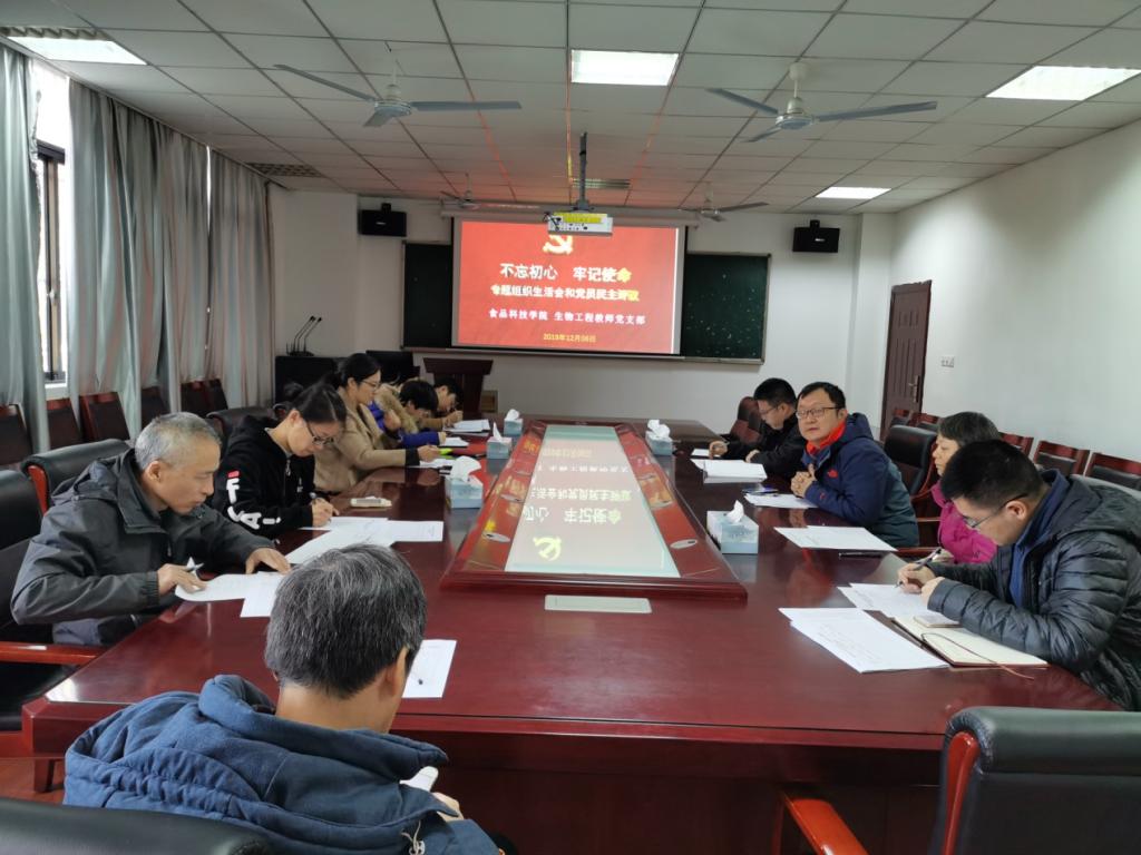 生物工程教师党支部召开了专题组织生活会,进行了支部和党员民主评议;并结合“不忘初心、牢记使命”系列主题学习的收获,开展了批评与自我批评。