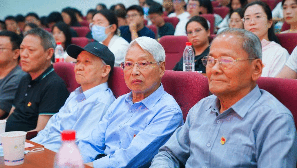 党日活动的第二部分,将学习贯彻习近平新时代中国特色社会主义思想主题教育与毕业生荣校爱校教育相结合。三位具有50年党龄的老党员江汉湖、陈伯祥、林炳芳上台为毕业生党员代表佩戴党徽。闪闪发光的党徽,承载的不仅仅是老党员们对于毕业生党员们衷心祝福,同样也是鞭策着他们党的事业离不开一代代人接班接力,希望他们永记党员身份,传承党的光荣传统,传承国产探花 校训精神,为新时代发展贡献青春力量。