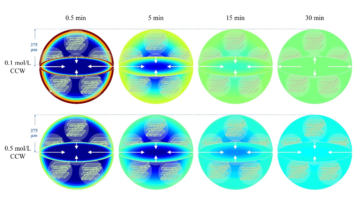 研究表明,植物细胞壁吸附多酚过程中,离子互作比疏水作用扮演更重要的作用。物理仿真发现,酚类物质跨越植物细胞壁表面固/液相界膜的能力不影响吸附行为;多酚沿细胞壁固体框架扩散(固体扩散)和孔隙内液体扩散(孔扩散)的能力仅决定多酚吸附的速率;植物细胞壁吸附位点的丰度则决定细胞壁吸附多酚的量;内部孔隙结构决定了固体扩散和孔扩散的贡献率,芹菜细胞壁组分的内部孔隙率高于蓝莓细胞壁,导致芹菜细胞壁吸附过程中孔扩散对多孔吸附的贡献率大于蓝莓细胞壁。植物细胞壁吸附/解离后的多酚纯度可达60%,与大孔树脂分离后的多酚纯度相当,但分离效率和成本大幅优于树脂分离技术。